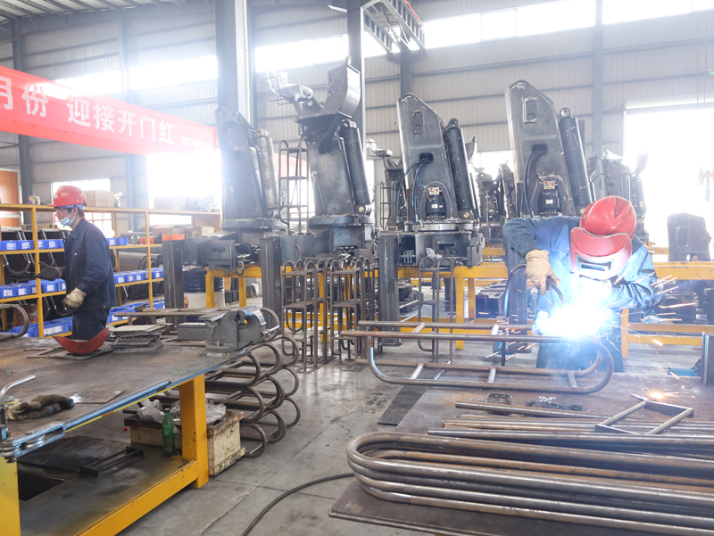 4、机械加工及焊装:(1)臂架组焊、机加工钻镗孔、涂底漆;(2)立柱组焊、机加工钻镗孔、涂底漆;(3)机架组焊、机加工钻镗孔、涂底漆;(4)支腿组焊、喷底漆;(5)浮动桥组焊、喷底漆。
