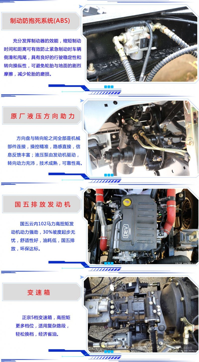 凯马2800轴距,新款凯捷1680白色单排可翻转驾驶室,云内102马力发动机,五档变速箱,180大梁,3.5吨后桥,6.50-16尼龙胎,油刹,ABS,原厂空调。挂桶压缩式垃圾车特点:是程力公司结合挂桶垃圾车和压缩垃圾车特点,开发的新一代垃圾车,自装、自卸、自动压缩,机械化装载,压实,运输和倾倒固体废物。配套使用全国通用垃圾车桶,运载量大。