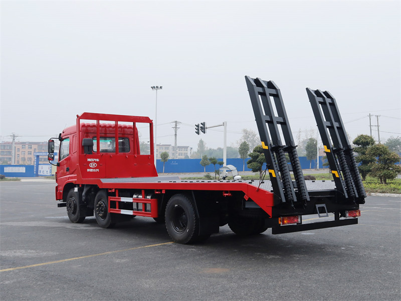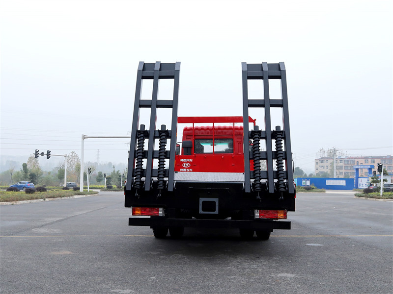 上装配置:横梁采用120*120方管(6mm或8mm),横梁间距25公分尾部加密,面板采用8mm厚花纹板或10mm、12mm平板,加密斜支撑,板面铺设防滑钢条,加强型双弹簧爬梯【三道筋】,斜坡下有后支腿,板面可伸缩至3.2米,可选择货箱带栏板设计、折叠爬梯【全液压或半液压】,该车有国家环保公告和燃油公告,可在全国各地上牌、办理营运证。
