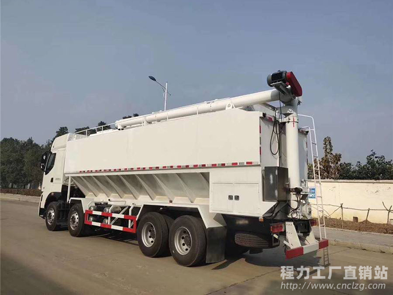 柳汽乘龙国六前四后八散装饲料运输车整车搭载玉柴400马力发动机,最大功率为294KW,国六排放标准。该发动机形式为高压共轨,不仅能使柴油机的燃油经济性和动力性达到最佳的平衡,而且有效降低了尾气排放。