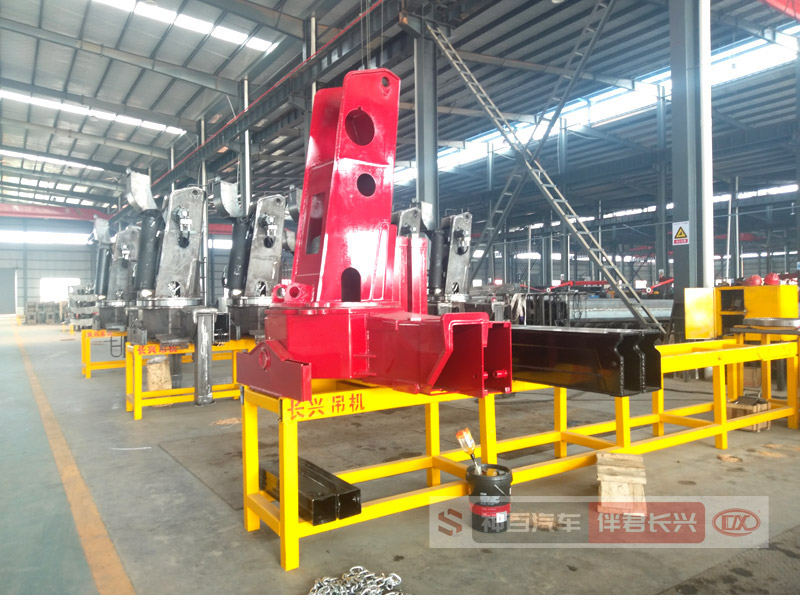 6、整车装配 臂架装配、机座装配、液压管路安装、警示灯安装、反射器安装、吊机与底盘的装配……一台台长兴随车吊将从这里整齐下线。