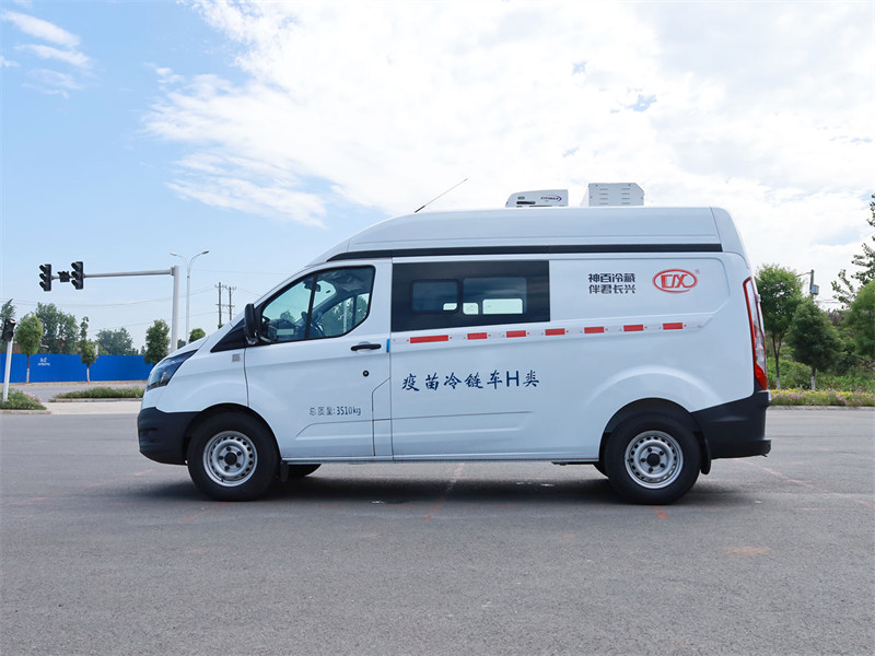 国六江铃福特全顺V362冷藏车是一款定位高端面包型冷藏车,厢内容积5个立方,新全顺搭载了福特PUMA2.0T,缸内直喷、高压共轨柴油涡轮增压器发动机,功率90kw,122马力,澎湃动力源源不绝。厢体内根据选装不同设备及功能,来满足运输各种疫苗、药品。配置:四轮碟刹,5速手动,前悬麦弗逊独立悬挂,后悬钢板弹簧非独立悬挂,前置前驱。标配博世9.1ABS+EBD,多功能助力方向盘,主驾驶安全气囊,电动玻璃、遥控中控、空调、双压缩机支架、侧拉门全开,后双开门、后排盲窗、倒车雷达。