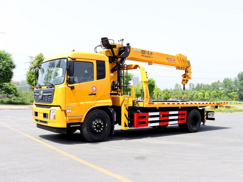 上装配置:板长6米,宽2.4米,6吨上装黄牌,双侧联动操作装置,1个6吨液压绞盘(25米钢丝绳),6吨后托臂,1~2个工具箱(根据底盘空间制作),L型抱胎架1对,拖叉1对,拖叉座1对,挡胎2个,2个辅助小轮,4根绑带,1个洗手箱,链钩1条,带LED长排警示灯,加装前配重,后拖臂更粗,行程更长;采用佛山海战力液压油缸,进口意大利海德多路阀,平衡阀;吊机配置:徐工8吨4节直臂吊机,吊机型号:SQS200型,举升高度12.8米,工作半径11米,360度全回转;选装配置:可选装徐工5吨3节直臂,徐工5吨4节直臂,徐工8吨4节直臂,三一帕尔菲格,徐州昊意,徐州福曼等其他品牌吊机;