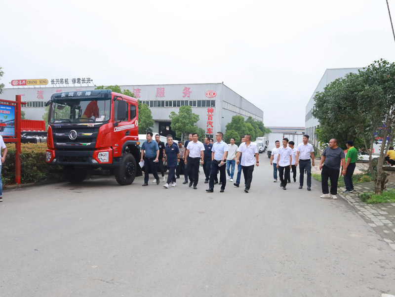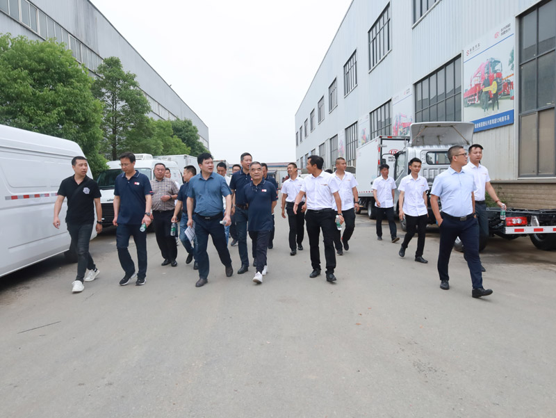 神百汽车集团董事长白贵涛陪同东风华神汽车有限公司总经理一起参观神百汽车厂家。
