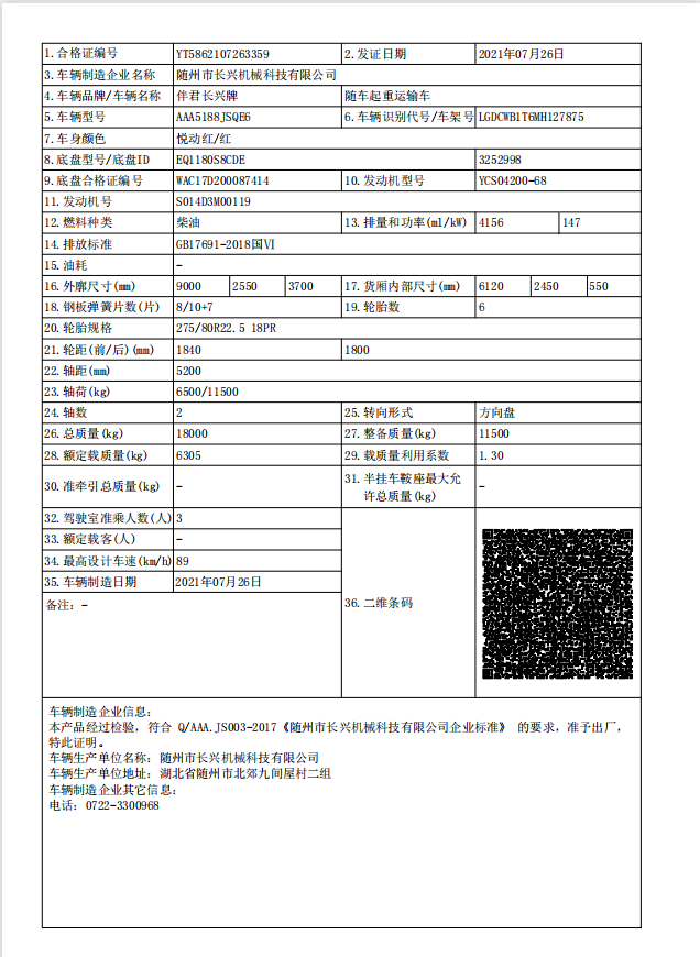 上装配置:上装可搭配6.3-10吨任意品牌吊机