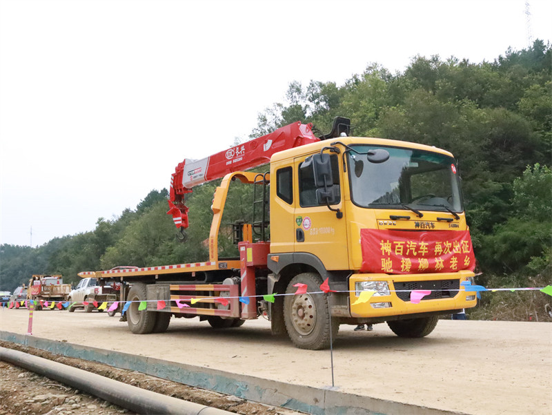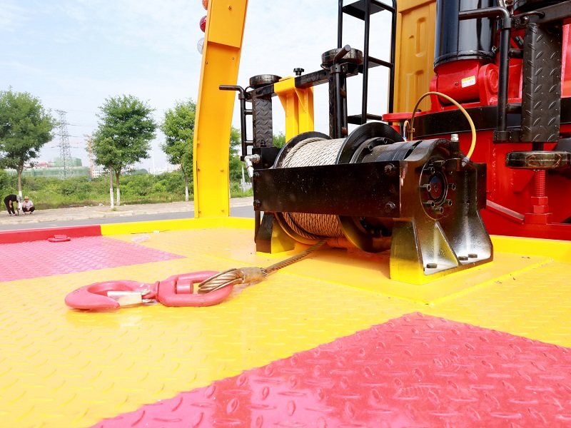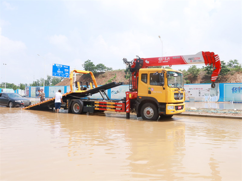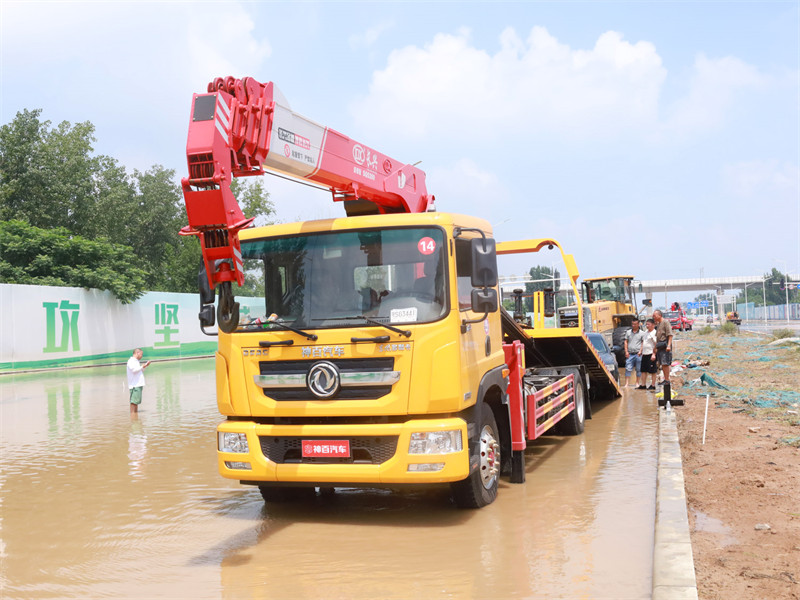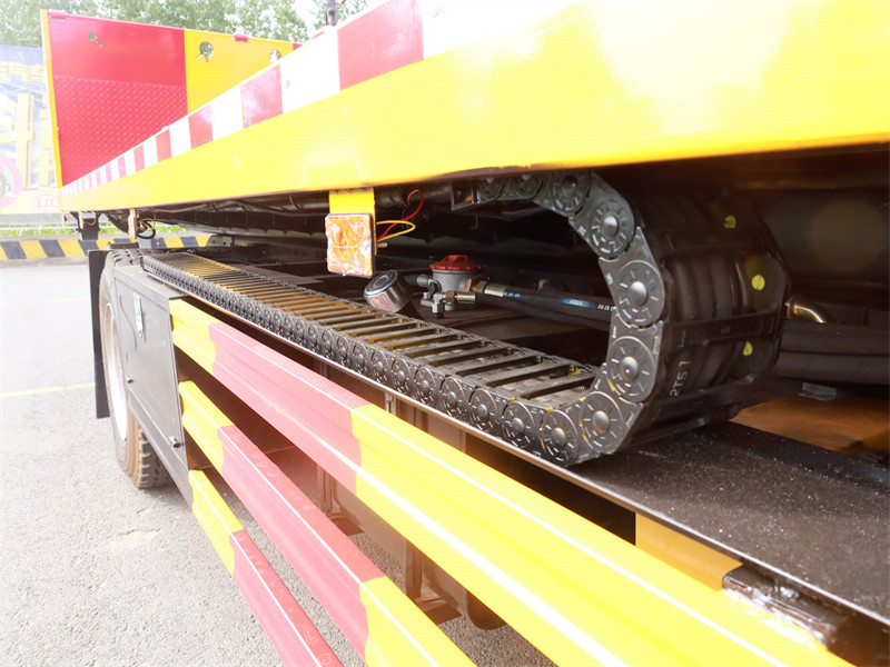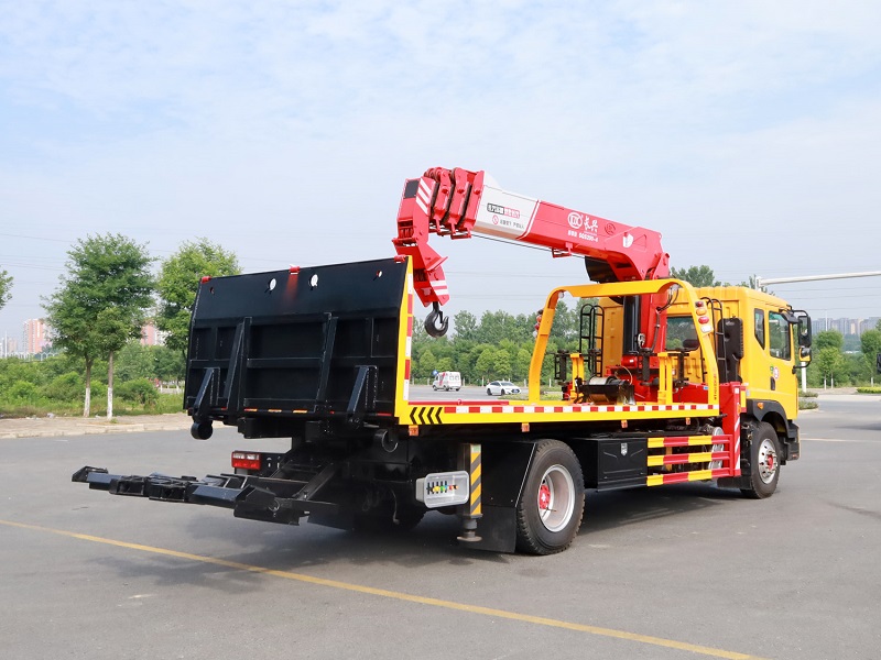 专用车配置:上装采用6mm高强度花纹板制作(防滑能力强,承载能力高,外表美观)改车平板总长度6.3米(含尾部板长1.1米)宽2.55米,平板承载质量为8吨,采用嘉善取力器,长源泵,意大利海德阀,加两个平衡阀,液压油管采用耐压双层钢丝油管,抗压力达到18兆帕,1个工具箱,配两个小车(辅助轮)4根捆绑带,L型抱胎架一对,拖叉一对,链钩一条,后工作灯3只,1个8吨液压绞盘(25米钢丝绳)8吨三节臂后拖举。也可根据客户需求加工制作