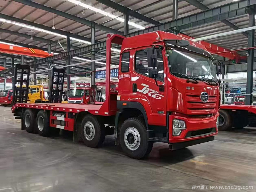 解放JK6国六平板车,半高顶全浮驾驶室,大柴320马力,轴距1900+3200+1350,300双层大梁,457后桥,速比5.286,11.00R20钢丝胎,带空调,300L铝合金油箱,空气弹簧座椅,电动门窗,电动后视镜,多功能方向盘,北斗+GPRS行车记录仪。整车尺寸:10020*2550*3260