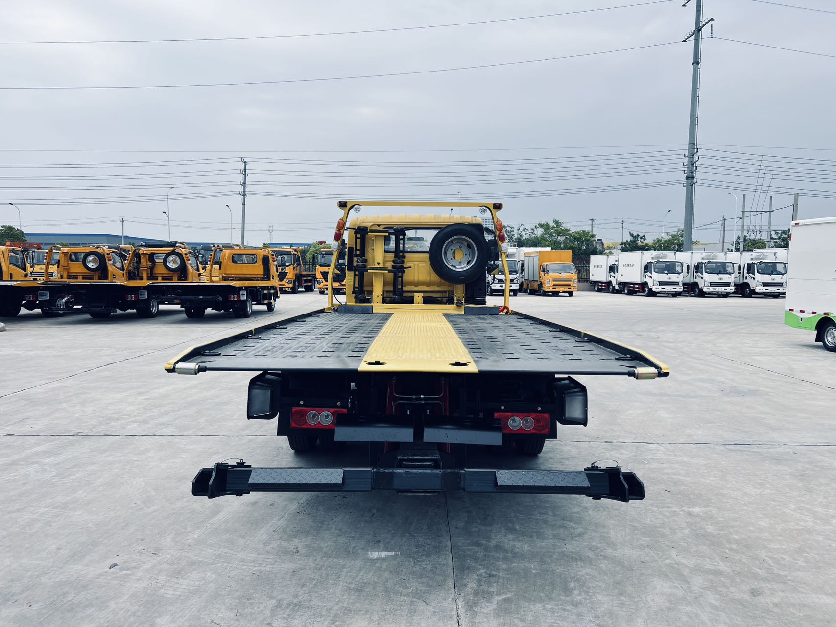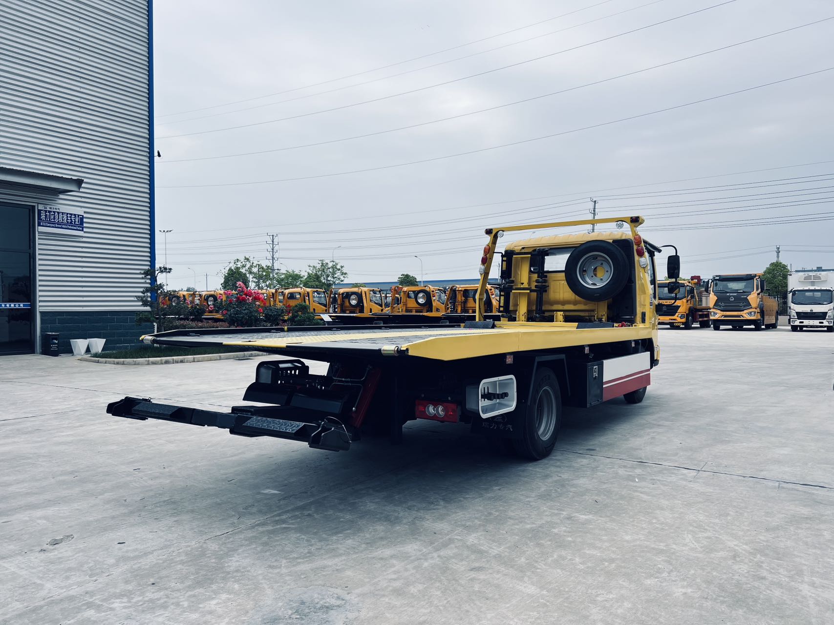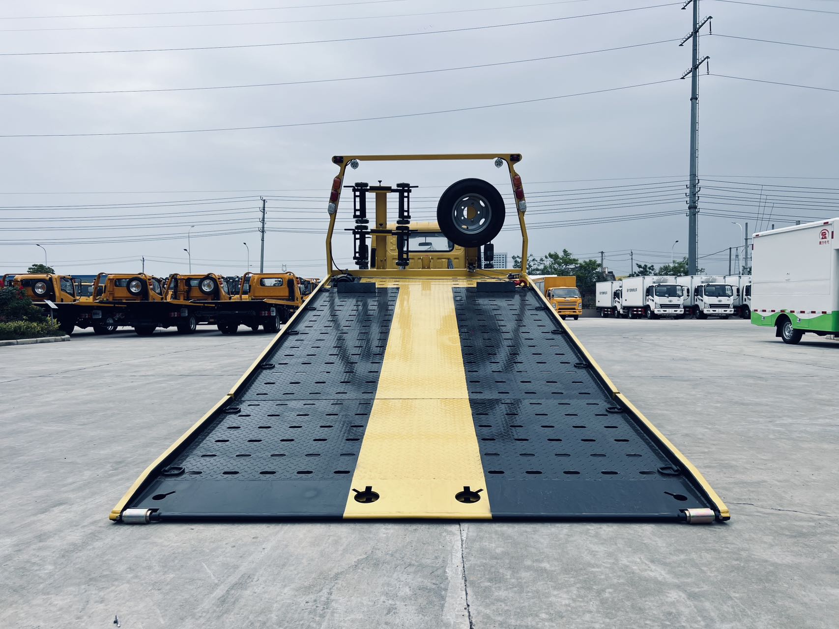 上装配置:老规3吨花纹板,4吨卷扬,21米钢丝绳,3吨后拖臂,4mm厚花纹一体板,板长5.2米,跑道冲孔,双侧联动操作,配4根绑带,辅助小车一套,L型抱胎架一对,工具箱一个,LED工作灯一对,其余标配。