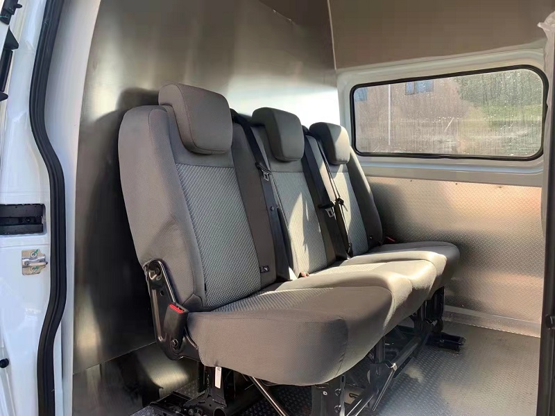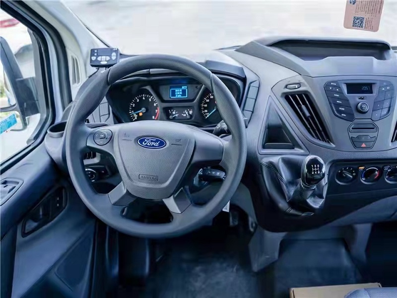 底盘配置:福特PUMA2.0T缸内直喷、高压共轨柴油涡轮增压器发动机。功能90KW,121马力,2.0排量,双排6人座。扭矩300N.M,四轮碟刹,5速手动档,前悬麦弗逊悬挂,后悬钢板弹簧非独立悬挂,前置前驱,标配博世9.1ABS+EBD,多功能方向盘,主驾驶安全气囊,电动玻璃、遥控中控、双支架、侧拉门全开,后双开门、后排盲窗。